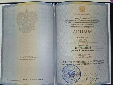 Дарья Галимьяновна — окончила Уральский государственный педагогический университет по специальности «Русский язык и литература» в 2009 году.